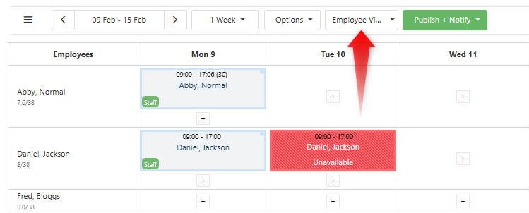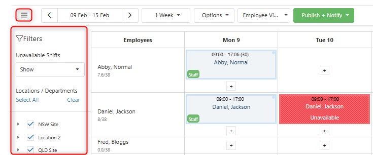 The "Unavailable Shifts" filter allows you to show/hide instances where the employees have a preset timeframe of unavailability set on their employee profile. For information on how to add unavailability into the system, please refer to our Employee Unavailability article.