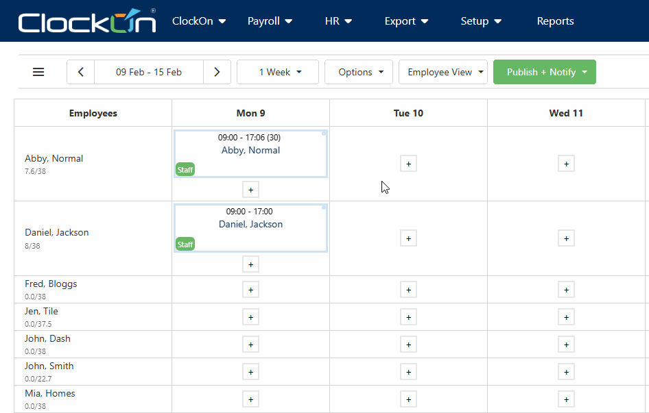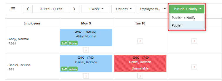 The publish option allows employees who have access to the system via an employee self-service feature such as ClockOn GO to be able to see the rosters.