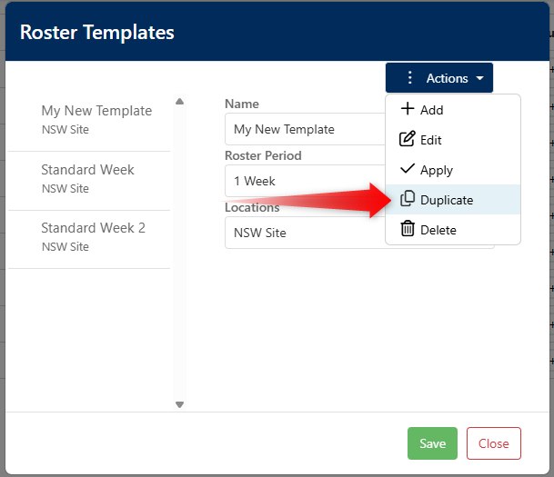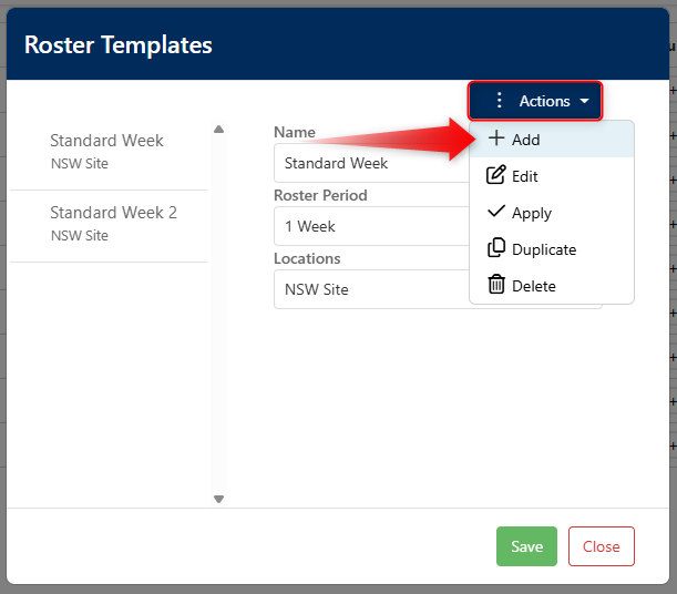 Templates provide a quick and easy way for users to bulk add a preset series of shifts to a period rather than adding the shifts individually for each period.